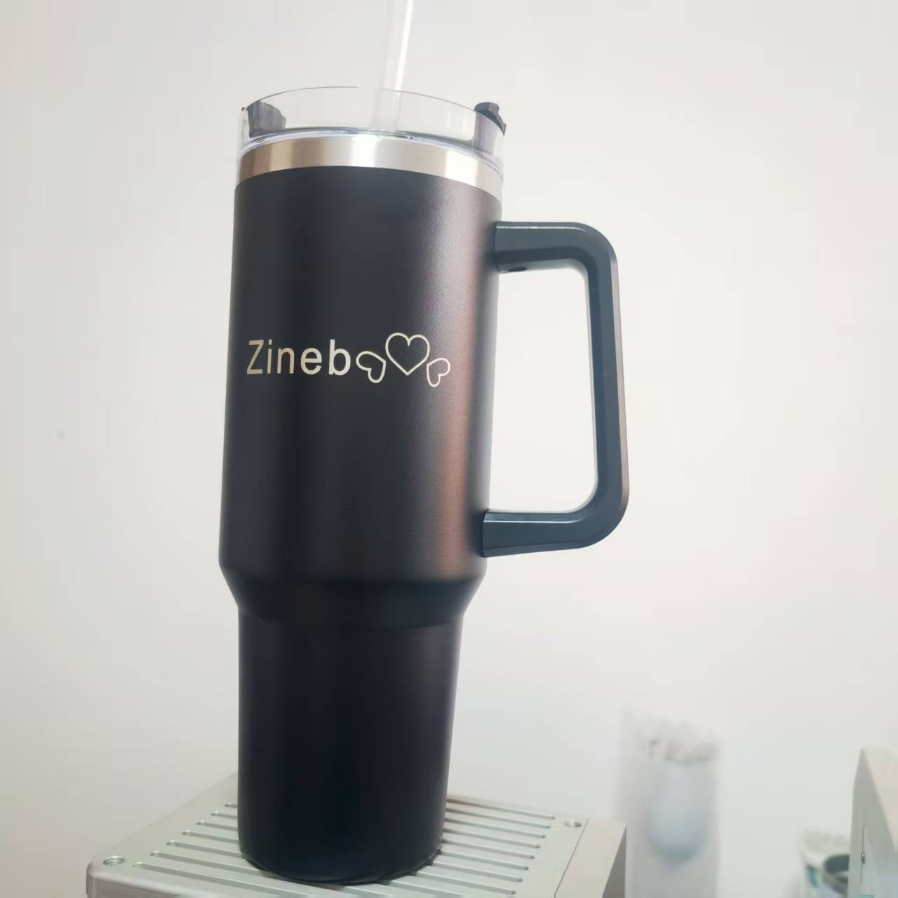 Vaso personalizado de 40 oz con asa, vasos aislados personalizados con logotipo de nombre, taza de café de viaje de acero inoxidable